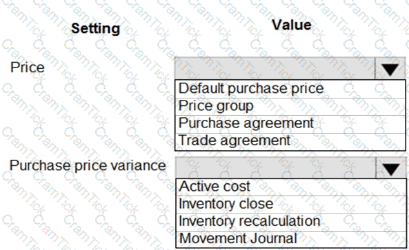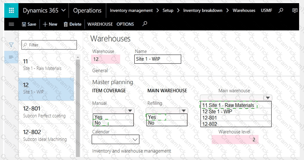 A manufacturing company uses Dynamics 365 Supply Chain Management.