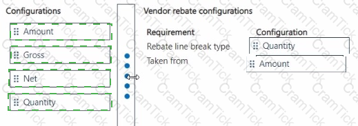 Which configurations should you use for the rebates? To answer, move the appropriate configurations to the correct requirements. You may use each configuration once, more than once, or not at all. You may need to move the split bar between panes or scroll to view content.