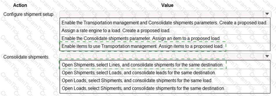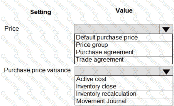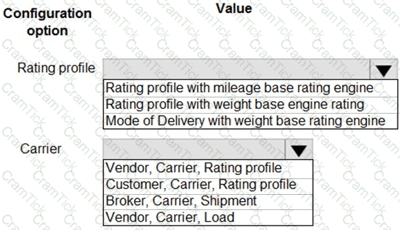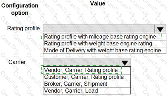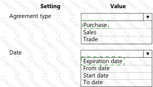 Which values should you use? To answer, select the appropriate options in the answer area.
