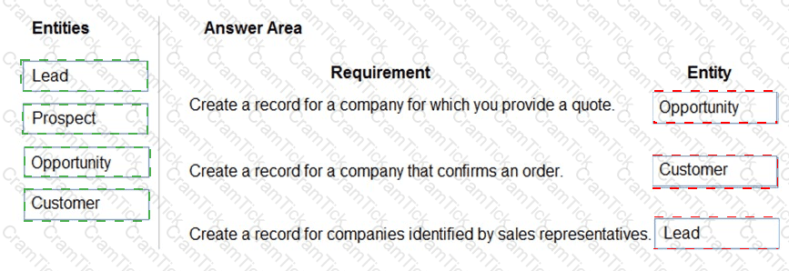 How should you configure the system? To answer, drag the appropriate entities to the correct requirements. Each entity may be used once, more than once, or not at all. You may need to drag the split bar between panes or scroll to view content.