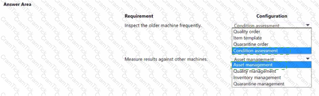 A company uses Dynamics 365 Supply Chain Management tor asset management.