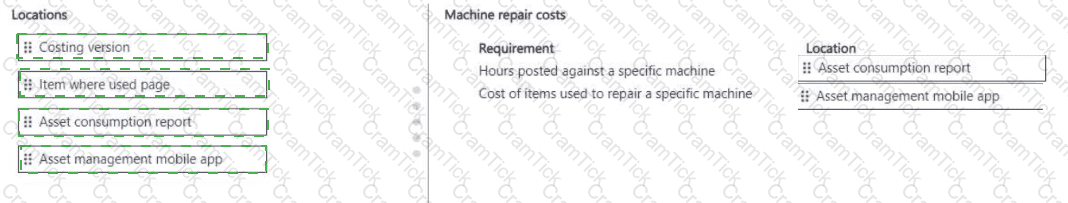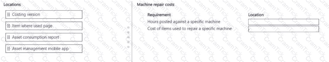 What should you use to identify the costs? To answer, move the appropriate locations to the correct requirements. You may use each location once, more than once, or not at all. You may need to move the split bar between panes or scroll to view content