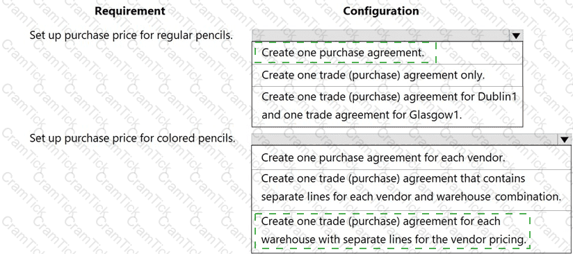 Which configurations should you use? To answer, select the appropriate options in the answer area.