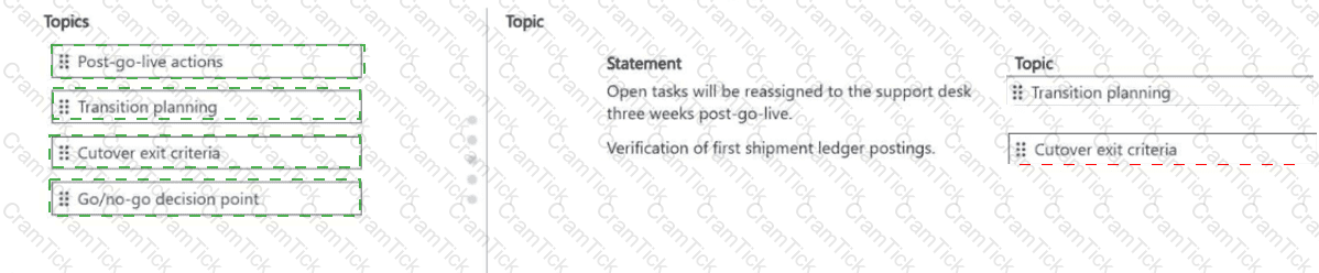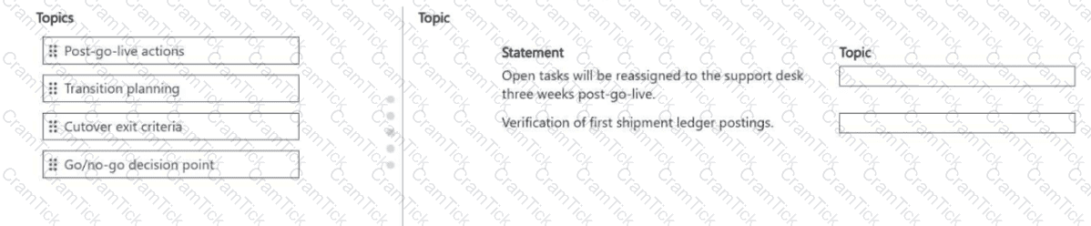 A company plans to use Dynamics 365 Finance and Supply Chain Management. The company is preparing for cutover and is documenting a plan.