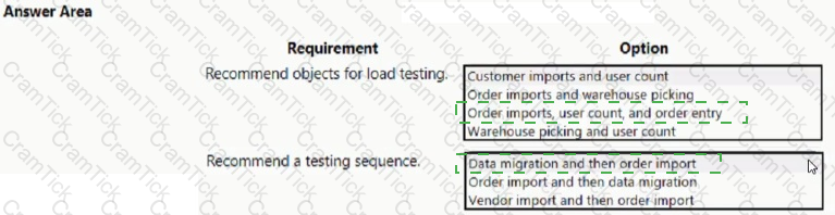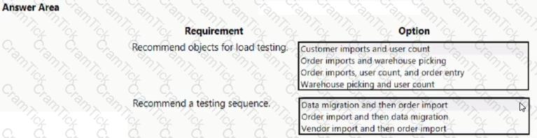 You need to recommend a performance and load testing strategy for the requirement. What should you recommend? To answer, select the appropriate options in the answer area. NOTE: Each correct selection is worth one point.