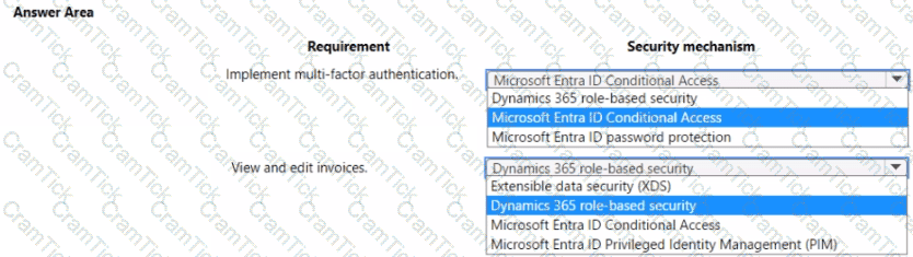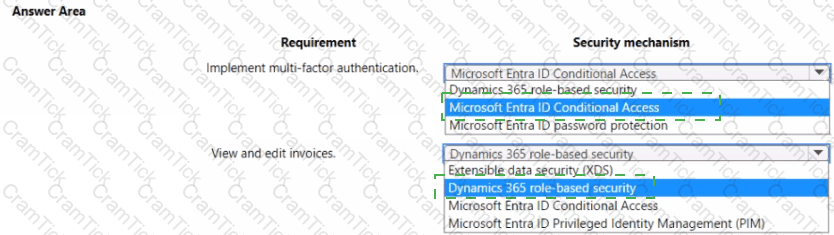 All users must sign into the system using multi-factor authentication. An accounting manager must be able to view and edit invoices by using out-of-the-box functionality.
