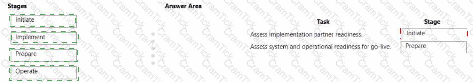 In which stage does each task take place? To answer, drag the appropriate stages to the correct tasks. Each stage may be used once, more than once, or not at all. You may need to drag the split bar between panes or scroll to view content.