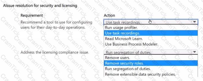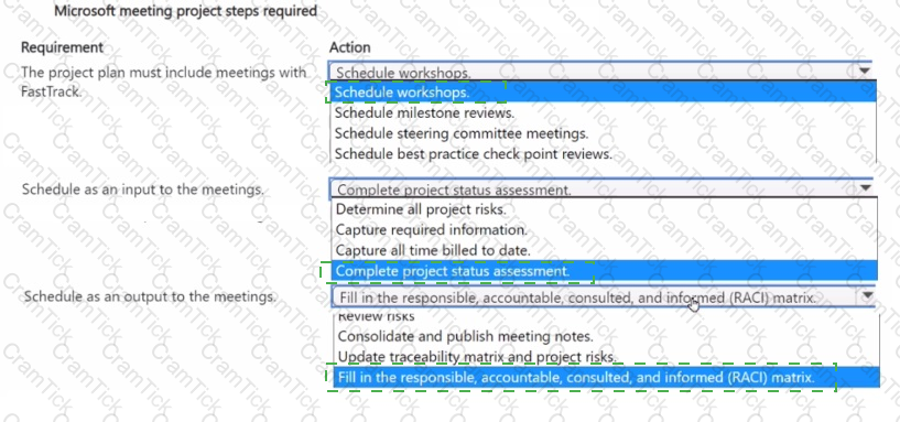 Which actions should you perform for each requirement? To answer, select the appropriate options in the answer area.