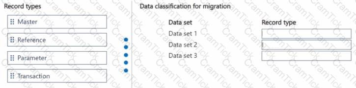 Which record type should you use for each data set? To answer, move the appropriate record type to the correct data set. You may use each record type once, more than once, or not at all. You may need to move the split bar between panes or scroll to view content.