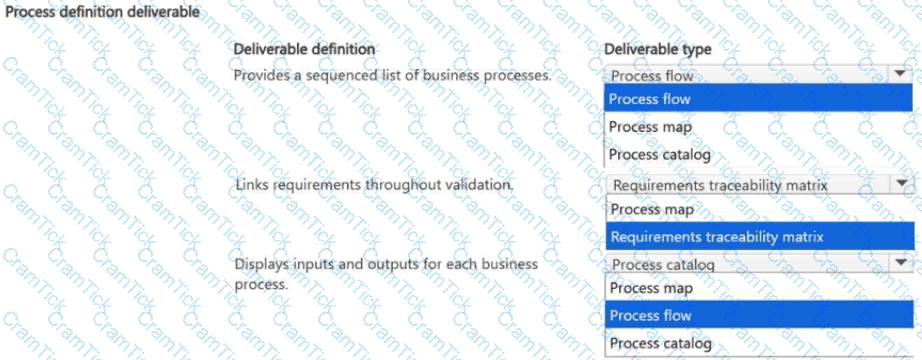 Which deliverable type should you identify for each deliverable definition? To answer, select the appropriate options in the answer area