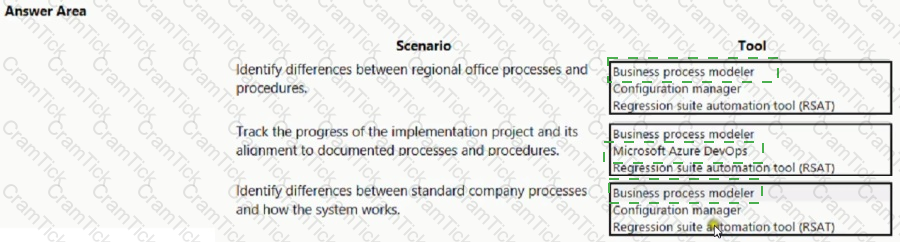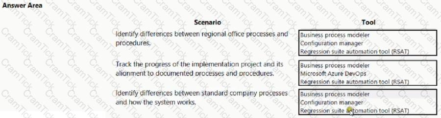 What should you recommend? To answer, drag the appropriate tools to the correct requirements. Each tool may be used once, more than once, or not at all. You may need to drag the split bar between panes or scroll to view content.