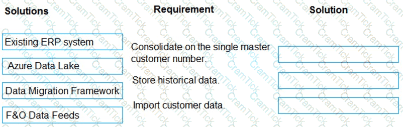 A company is implementing Dynamics 365 Supply Chain Management. The company has 11 legal entities. Each entity uses a separate enterprise resource planning (ERP) system. A customer may have a unique customer number in each system because the systems are disconnected. One of the customer numbers will be used as the master number in Dynamics 365.