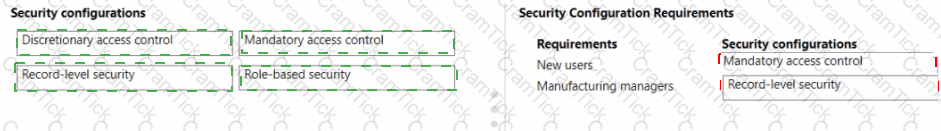 You need to identify the security configuration required for new users and for the manufacturing managers.