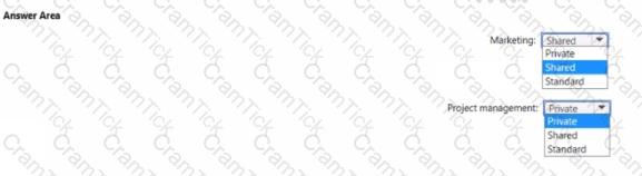 Which type of channel should you use for each department? To answer, select the appropriate options in the answer area.