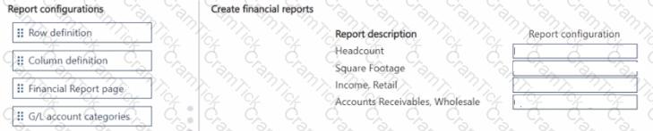 Which report configuration should you use to add the report descriptions lo financial reports? To answer, move the appropriate report configurations to the correct report descriptions. You may use each report configuration once, more than once, of not at all. You may need to move the split bar between panes or scroll to view content