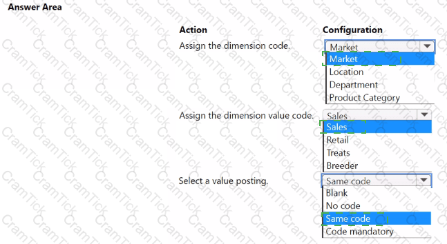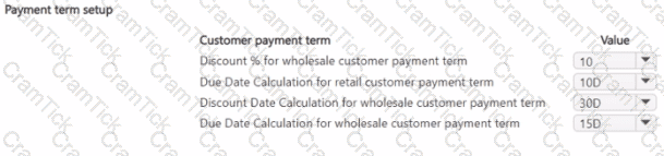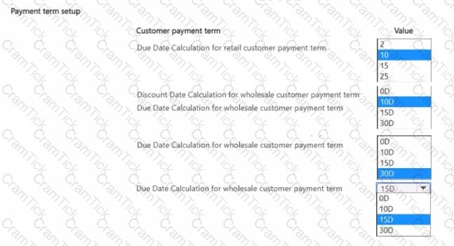 You need to configure the system to post to the receivables account for wholesale customers. Which two configurations should you use? Each correct answer presents part of the solution. NOTE; Each correct selection Is worth one point.