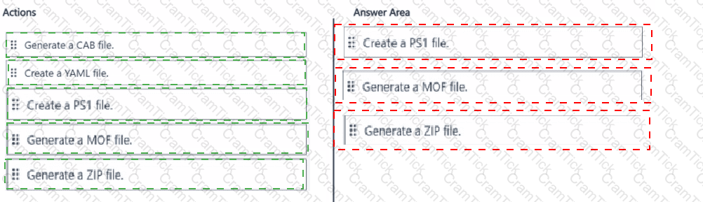 Which three actions should you perform in sequence? To answer, move the appropriate actions from the list of actions to the answer area and arrange them in the correct order.