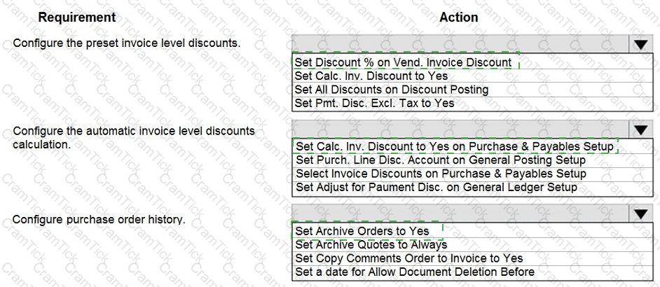 Which two inventory setup configurations should you use? To answer, select the appropriate options in the answer area.