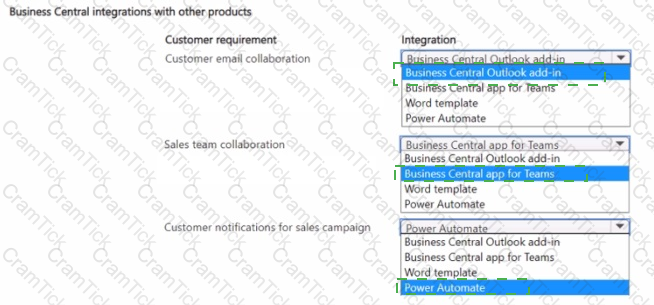 Which Microsoft integration aligns with each requirement? To answer, select the appropriate options in the answer area.