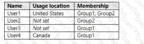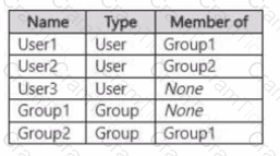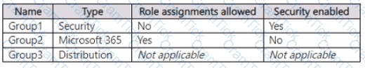 You have a Microsoft 365 E5 subscription that contains the groups shown in the following table.