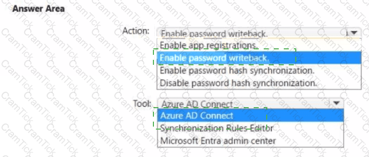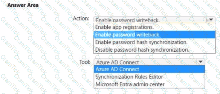 You enable self-service password reset (SSPR) for Group1. You configure security questions as the only authentication method for SSPR.