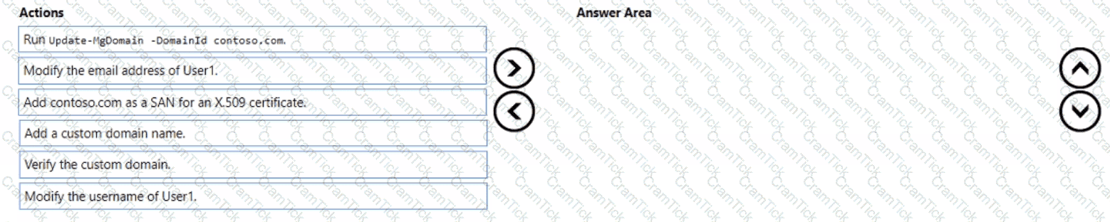 You create a user account named User1. User1 is configured to sign in as userl@contoso.onmicrosoft.com.