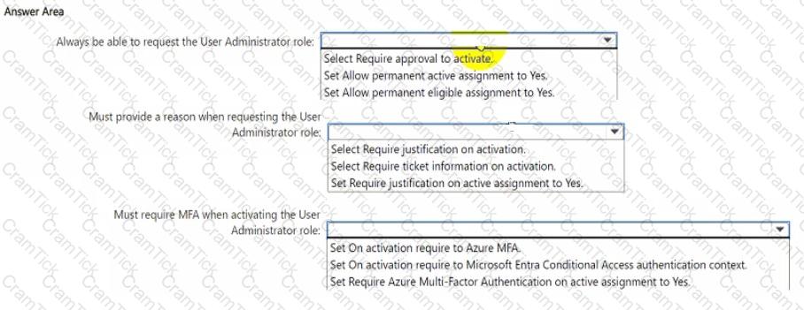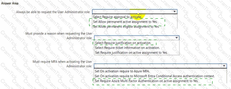• Must require multi-factor authentication (MFA} when activating the User Administrator role
