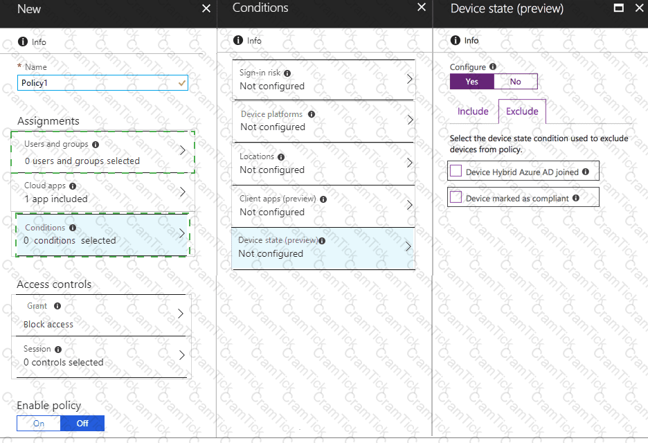 Which two additional settings should you configure in Policy1? To answer, select the appropriate options in the answer area.