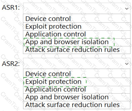 You plan to create two attack surface reduction (ASR) policies named ASR1 and ASR2. ASR1 will be used to configure Microsoft Defender Application Guard. ASR2 will be used to configure Microsoft Defender SmartScreen.