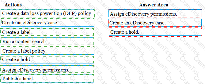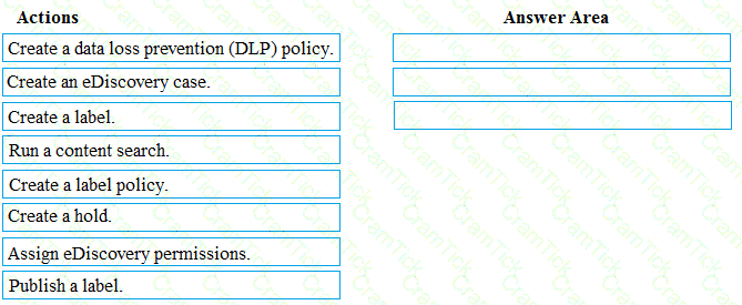 Which three actions should you perform in sequence from the Security & Compliance admin center? To answer, move the appropriate actions from the list of actions to the answer area and arrange them in the correct order.