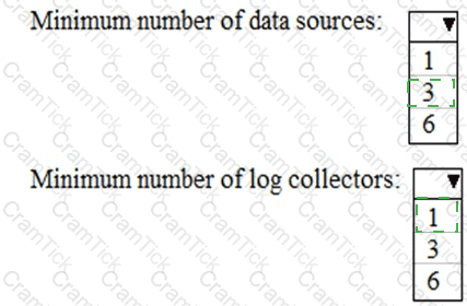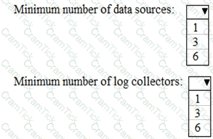 What is the minimum number of data sources and log collectors you should create from Microsoft Cloud App Security? To answer, select the appropriate options in the answer area.