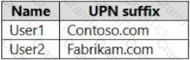 Your network contains an on-premises Active Directory domain named contoso.com. The domain contains the users shown in the following table.