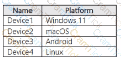 You have a Microsoft 365 E5 subscription and use Microsoft Purview. The subscription contains the devices shown in the following table.