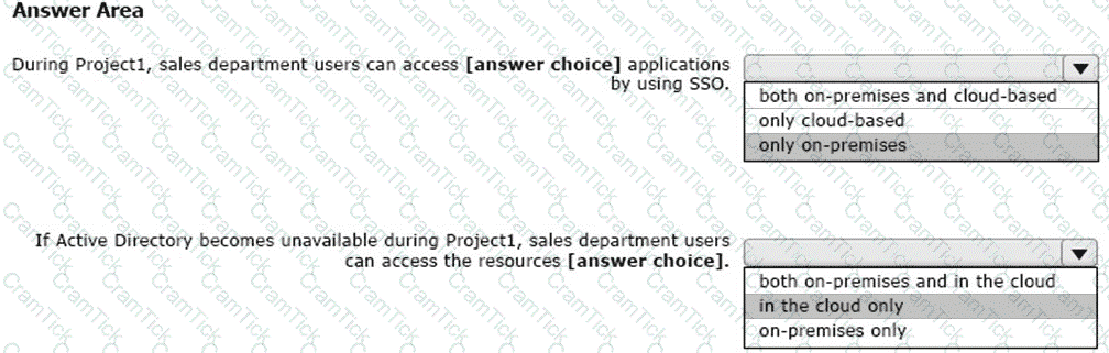 You need to ensure that all the sales department users can authenticate successfully during Project1 and Project2.