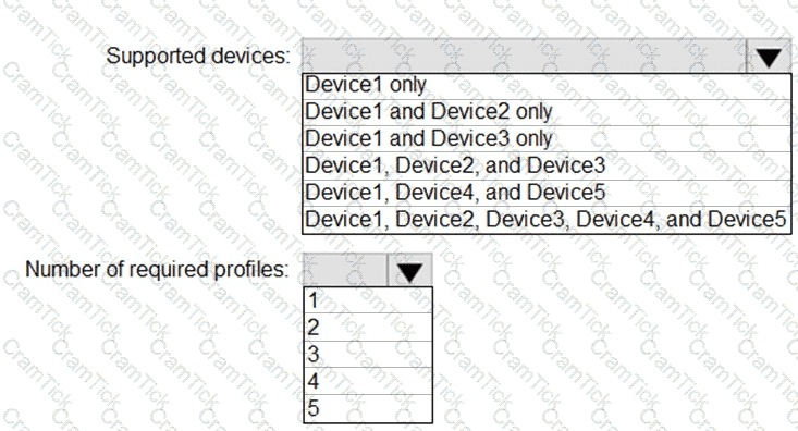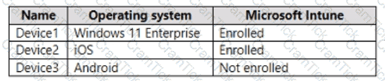 You have a Microsoft 365 subscription that contains the devices shown in the following table.