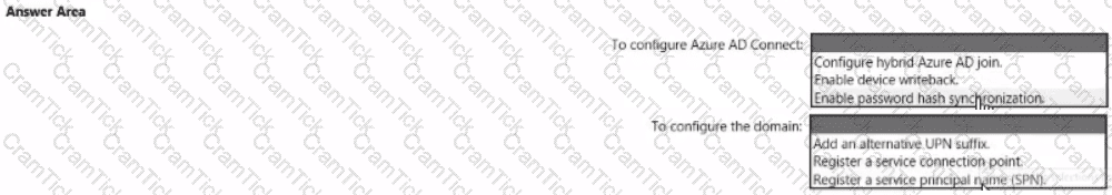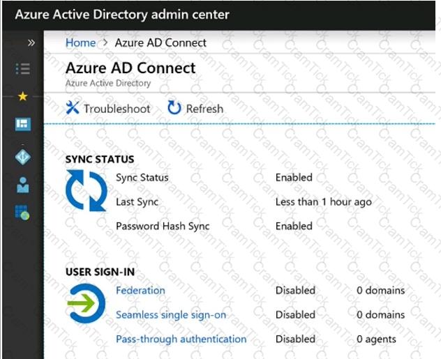 You use Azure AD Connect to sync user objects and group objects to Azure Directory (Azure AD) Password hash synchronization is disabled.