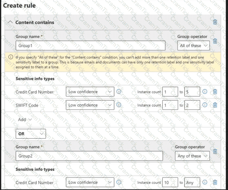 You create a data loss prevention (DLP) policy named DLP1 that has the advanced DLP rule as shown in the exhibit.