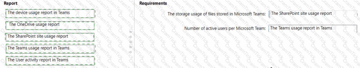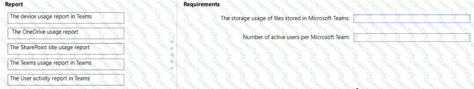 Which report should you review for each requirement? To answer, drag the appropriate reports to the correct requirements. Each report may be used once, more than once, or not at all. You may need to drag the split bar between panes or scroll to view content