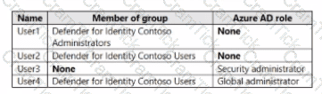 Your company has an Azure AD tenant named contoso.com that includes the users shown in the following table.