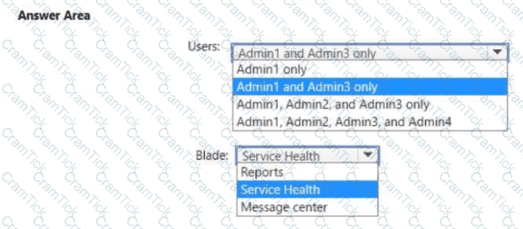 What should you configure in the Microsoft 365 admin center? To answer, select the appropriate options in the answer area.