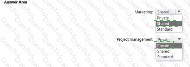 Which type of channel should you use for each department? To answer, select the appropriate options in the answer area.