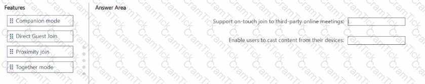 What should you configure for each requirement? To answer, drag the appropriate features to the correct requirements. Each feature may be used once, more than once, or not at all. You may need to drag the split bar between panes or scroll to view content.