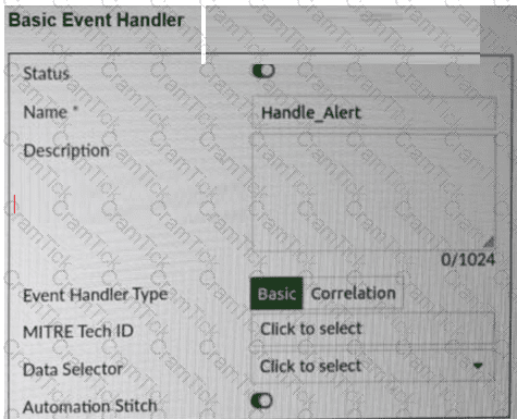 A basic event handler is shown. You have enabled Automation Stitch to automate the handling of an alert. Which two steps must you take to use this automation stitch? (Choose two answers)