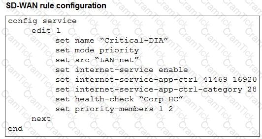 The administrator configured two SD-WAN rules to load balance traffic.