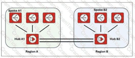 (You plan a large SD-WAN deployment for a global company. You want to divide the network architecture into five geographical regions and install two hubs in each region for increased redundancy. You expect a significant amount of traffic within each region and limited traffic flow between spokes in different regions. You plan to connect the small branch sites to only the closest hub in their regions and the large branch sites to the two hubs in the regions.