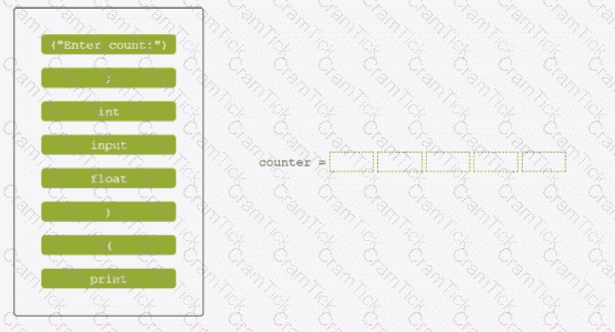 Insert the code boxes in the correct positions in order to build a line of code which asks the user for an Integer value and assigns it to the counter variable.
