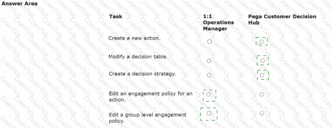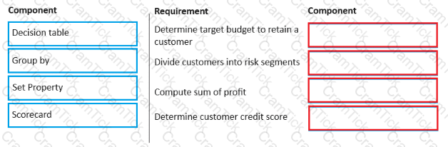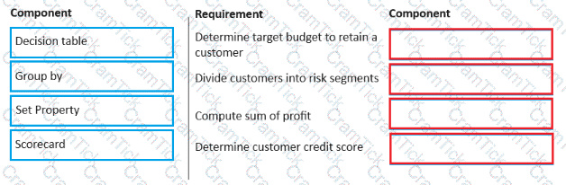 You are a deaccessioning architect on a next-best-action project and are responsible for designing and implementing decision strategies. Select each component on the left and drag it to the correct requirement on the right.