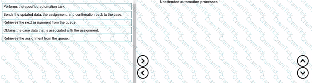 Unattended automations, when run. follow a basic process flow. Arrange the following steps in the order in which unattended automation topic processes a case.