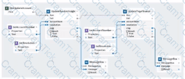 our project for a customer service department contains a Windows form with a btnUpdateAccount button. Users click btnUpdateAccount to automate the updates of other customer account systems at the end of the call. You create the UpdateAccount automation to ensure that the Windows form is still accessible after clicking the button.