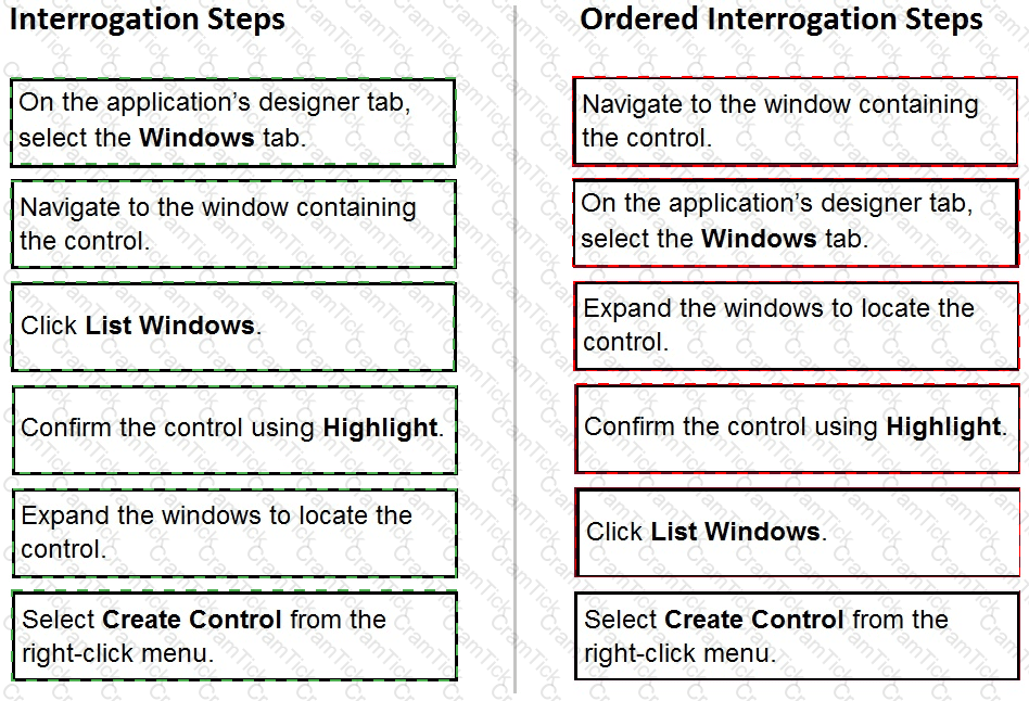 When interrogating a Windows control, the drag and drop Default interrogation method does not work. You decide to use the Create Control option to interrogate the control.